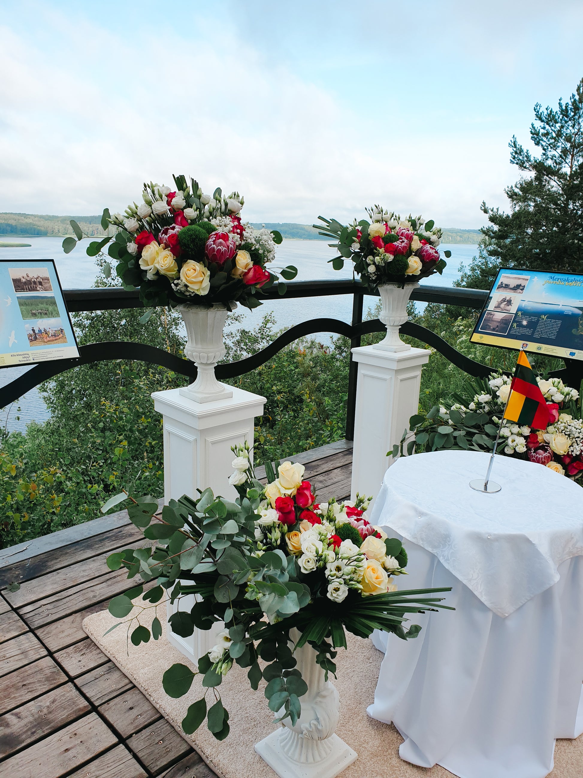 - Gėlių kompozicijos ir floristika: Mūsų patyrę floristai kurs išskirtines gėlių puokštes, stalų ir erdvių dekoracijas, pritaikytas prie jūsų pasirinktos temos ir spalvų paletės. Naudojame tik šviežiausias gėles, siekdami sukurti magišką atmosferą.